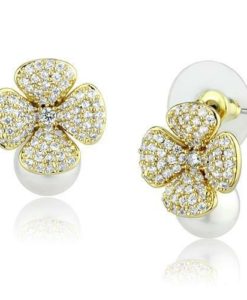 3W1263 – Gold Brass Earrings with Synthetic Pearl in White