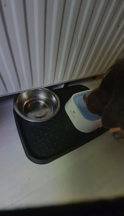 This is the perfect dog drinking bowl. It has a large capacity, stays firmly in place, and prevents tampering. A tip: secure the rubber legs for a while as they may become loose. This ensures the stability of the drinking bowl.