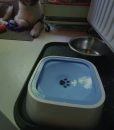 Our puppy was initially curious, then a bit frightened! It was amusing and highly entertaining to watch him try to figure out how it worked. It’s truly amazing and much less messy than his usual drinking habits!
