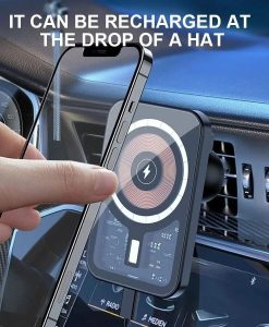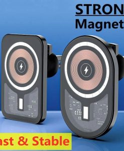 Upgrade your driving experience with our state-of-the-art 15W Fast Charging Magnetic Wireless Car Charger with Air Vent Phone Holder Stand, specially designed for iPhone 12, 13, and 14 Pro Max series. Enjoy the perfect blend of style, convenience, and technology, all wrapped up in one compact device. Whether you’re navigating through city streets or embarking on a road trip, our car charger ensures your smartphone is always powered up and within arm’s reach.