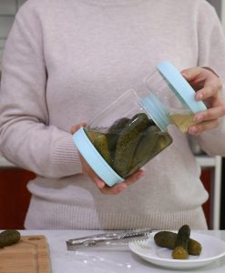 - Wet and Dry Separation: The jar’s clever design allows for easy separation of liquid from food, ensuring your pickles and olives are not soaked when serving.
