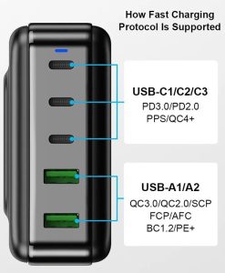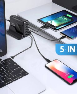 - Robust Output: Equipped with 2 A Ports and 3 C Ports, it’s versatile enough to juice up everything from phones to laptops.