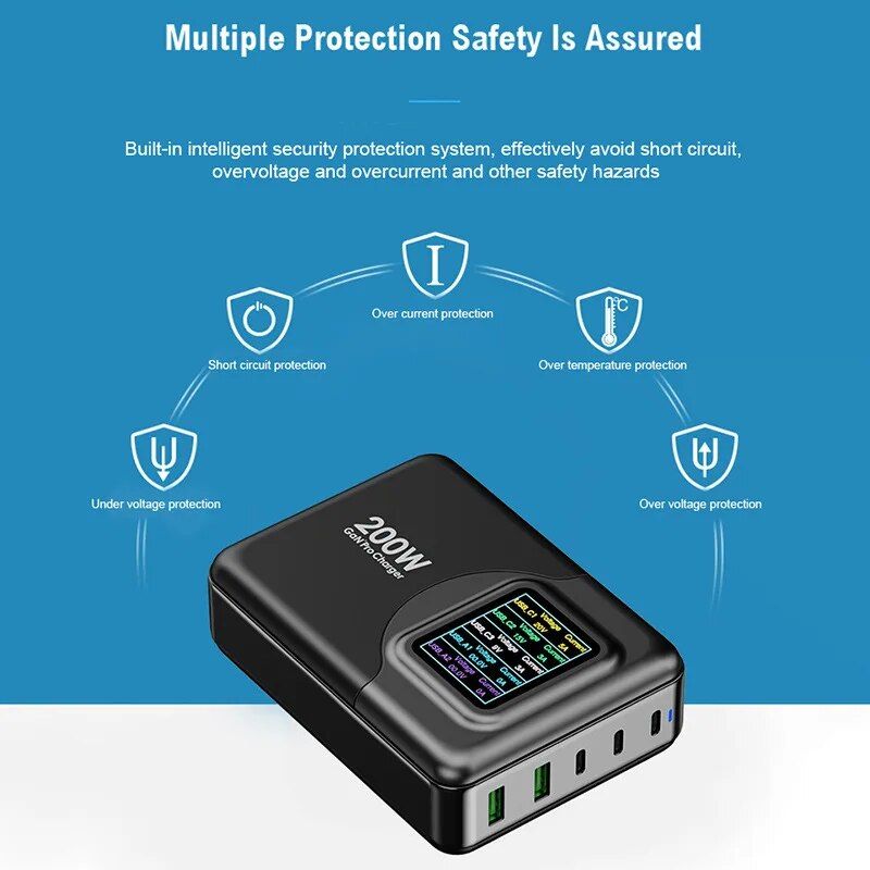 Unlock the ultimate charging experience with our cutting-edge 200W GaN Universal Fast Charger. Designed with the modern user in mind, this charger combines speed, versatility, and intelligence to power up your devices with efficiency and style.