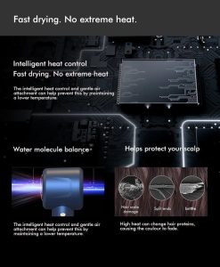 What sets our leafless hair dryer apart is its unique blend of technology and functionality. The infrared heating element ensures even and consistent heat distribution, reducing the risk of hair damage. With its innovative Anion, Nanoe, and Thermostatic features, your hair not only dries but gets a rejuvenating treatment, ensuring a shiny and healthy look. The Diffusion Air Nozzle ensures a broad air pattern, enveloping your hair for quick drying, making it ideal for both professionals and daily users. Plus, the adjustable temperature control provides flexibility for all hair types.