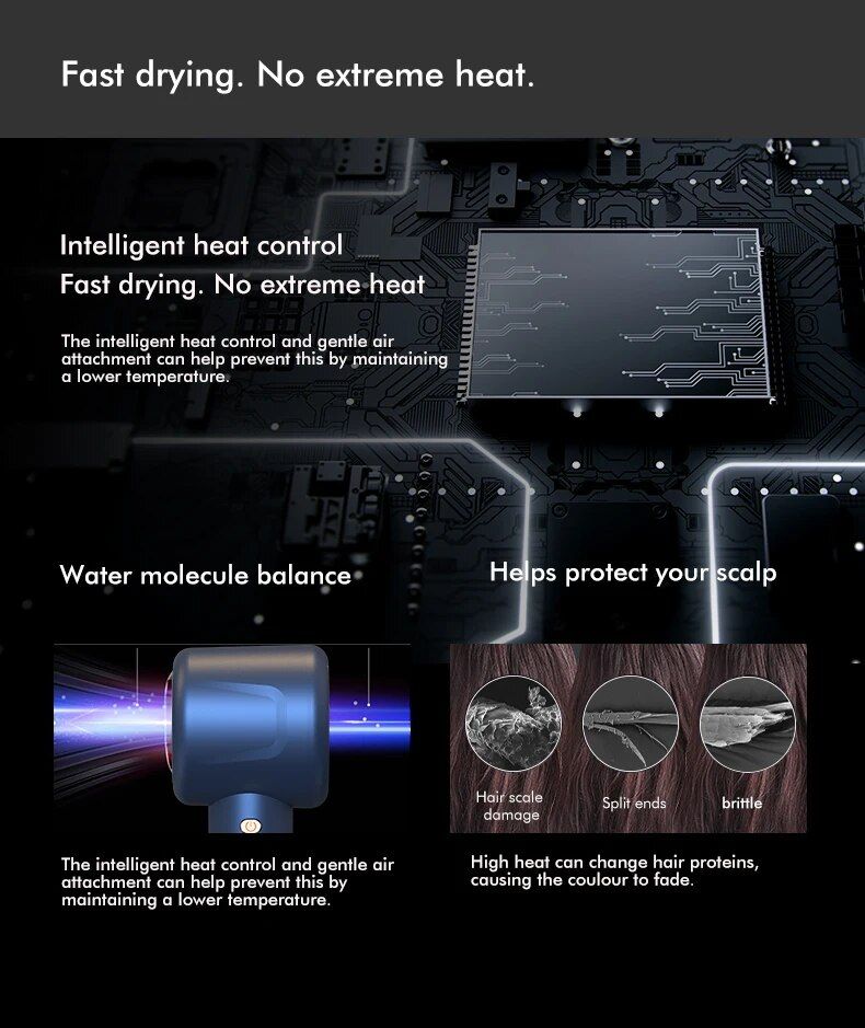 Elevate your hair drying experience with our state-of-the-art leafless personal hair dryer. Not just any hair dryer, this is a game changer. Designed with cutting-edge technology, our hair dryer ensures a quick yet gentle drying, giving your hair the love it deserves.