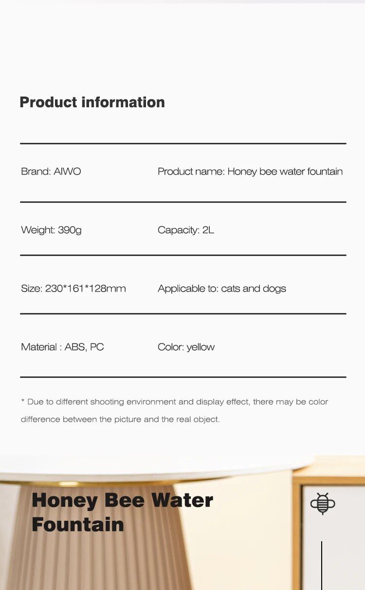 Don’t miss the opportunity to enhance your pet’s health and happiness. Add the “Bee Happy” 2L Quiet Pet Water Fountain to your cart now and watch your pet’s excitement over their new favorite source of hydration!