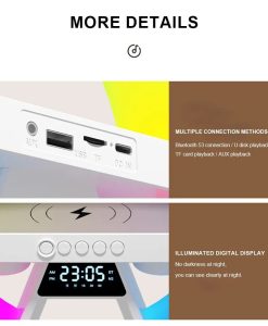 Experience a blend of modern technology and stylish design with our 3-in-1 Wireless Charger Stand. This multifunctional masterpiece doesn’t just serve as a charging station, but also sets the ambiance with its RGB night light and fills your room with your favorite tunes from its built-in Bluetooth speaker.