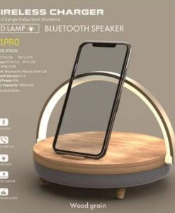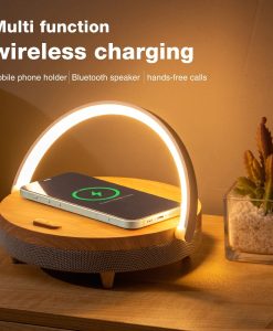 Experience the future of multi-functional design with our 3-in-1 Wooden Wireless Charger combined with an LED lamp and a robust Bluetooth speaker. A perfect fusion of style and utility, this device not only makes your charging sessions hassle-free but also elevates your music and lighting experiences.