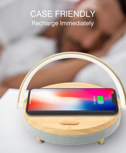 It’s not just a wireless charger – it’s a statement piece. The wooden design gives it a touch of nature while the state-of-the-art features make it a modern marvel. Combine that with the seamless integration of an LED lamp and Bluetooth speaker, and you have a unique gadget that stands out in both functionality and aesthetic appeal.