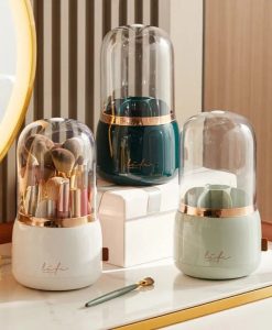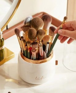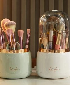 What sets our 360° Rotating Cosmetic Brush Holder apart is its unique combination of function and style. Not just a storage solution, it’s also a statement piece that adds a touch of elegance to any space. The rotating feature ensures that your favorite brushes are always within reach, making your makeup application faster and more efficient. Plus, its clear design allows for easy visibility, so you can grab what you need without the guesswork.