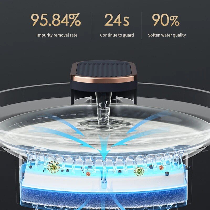 The built-in sensor detects your pet’s approach within a 2-3 meter range, activating the fountain and turning it off 30 seconds after your pet leaves. This not only conserves energy but also prolongs the life of the filter and pump, making it an eco-friendly and cost-effective solution.