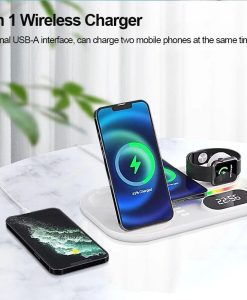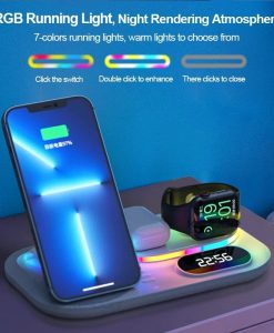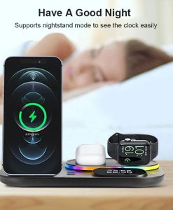 Unveiling the ultimate solution to all your charging needs – a sleek 4-in-1 Fast Wireless Charging Station, meticulously designed for modern tech enthusiasts. It not only powers up your iPhone, Apple Watch, and Airpods swiftly but also doubles as a stylish lamp and a handy clock. An elegant fusion of technology and convenience that’s perfect for your nightstand, workspace, or living room.