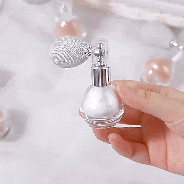 This product is GREAT! It offers a soft, white, sparkly shine that can be built upon. It comes in a charming, old-fashioned squeeze puff bottle that adds to its allure.