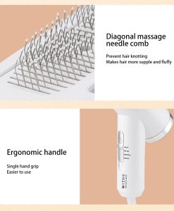 - Multifunctional: Choose from three adjustable temperature settings to ensure your pet’s safety and comfort. The multi-directional rotatable brush head makes styling a breeze, while the angled massage pin comb helps prevent tangles and mats.