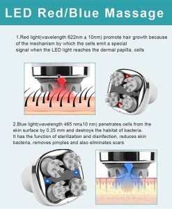 - Red & Blue LED Light Therapy: Red light promotes hair growth by energizing dermal papilla cells, while blue light acts as a sterilizer, reducing skin bacteria and eliminating scars.