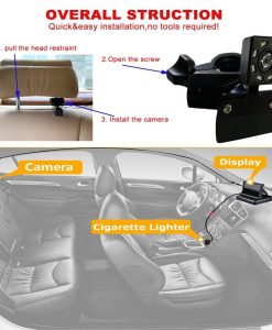 Inside the package, you’ll find everything you need for a quick and easy installation: a 5.0-inch monitor, 8 LED camera, car charging cable, video cable, manual, and a PU anti-slip mat. Set it up in minutes, and enjoy the drive with newfound confidence and comfort.