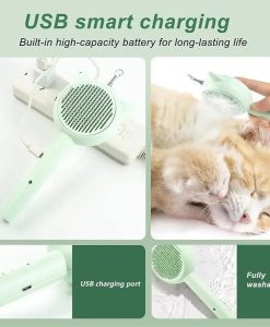 Our product stands out for its multifunctionality and ease of use. It’s not just a brush; it’s a grooming tool, a playmate, and a pet’s delight, all rolled into one. With its ergonomic design and USB charging, it’s crafted to offer both comfort and convenience. Whether you’re at home or on the go, this brush ensures your pet’s grooming needs are always met.