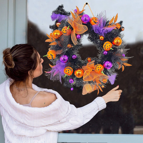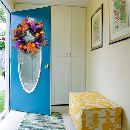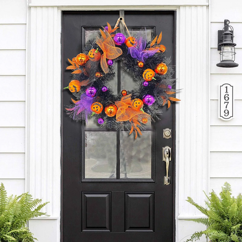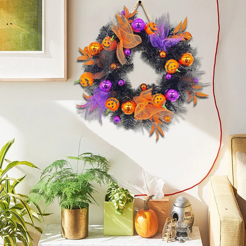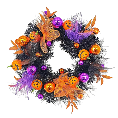 Add a festive touch to your Halloween decor with this 50 cm Halloween Pumpkin Jack-o’-Lantern Wreath, designed to bring spooky fun to your front door. Featuring classic pumpkin designs, this wreath is the perfect way to welcome trick-or-treaters and guests with a touch of seasonal charm.