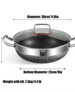 Our pot boasts a 5-layer steel structure, crafted through one-piece die-casting molding to ensure durability and longevity. Its thickened design not only conducts heat quickly and evenly but also reduces the likelihood of food sticking or burning. The laser-etched, physical non-stick surface further enhances your cooking ease. The pot’s high body design, standing at 9cm/3.5″, makes it ideal for a variety of cooking methods.