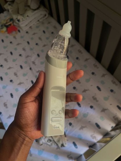 This nasal aspirator works wonders for my newborn. I love the various suction settings and interchangeable tops. It’s a solid 10/10 for me. I will note that after charging it and attempting to turn it on, I initially thought it didn’t work, but you do have to hold the power button for a moment.