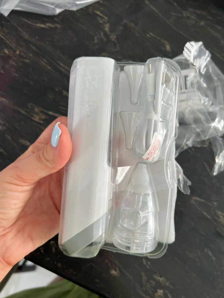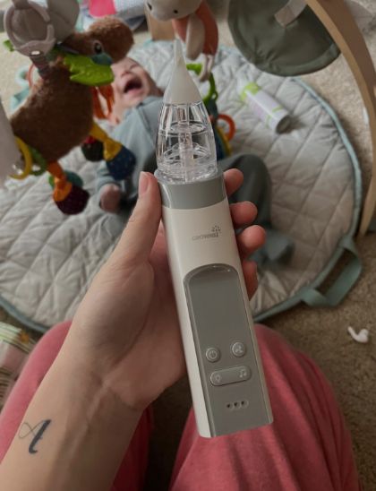 I adore this device. It offers different suction settings, and we’ve found that level 2 works perfectly for our 1-month-old. It suctions out snot much more efficiently than the bulb, and you can see the contents inside the device, making it easy to clean. It’s a solid 10/10, and I’ll always consider it a great baby shower gift.