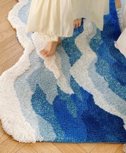 The uniqueness of our rug lies in its combination of functionality and artistry. Not only does it serve as a comfortable and safe floor covering, but it also doubles as a piece of art, with its scenic wave design creating a visual escape to the seaside. This rug is not just a home necessity; it’s a statement piece that reflects a love for the ocean and an eye for design.