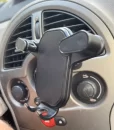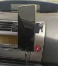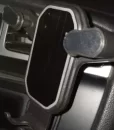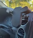 Mounts firmly to the air vent and operates smoothly. Easy to place and remove the phone, and there’s space for a charging cable.
