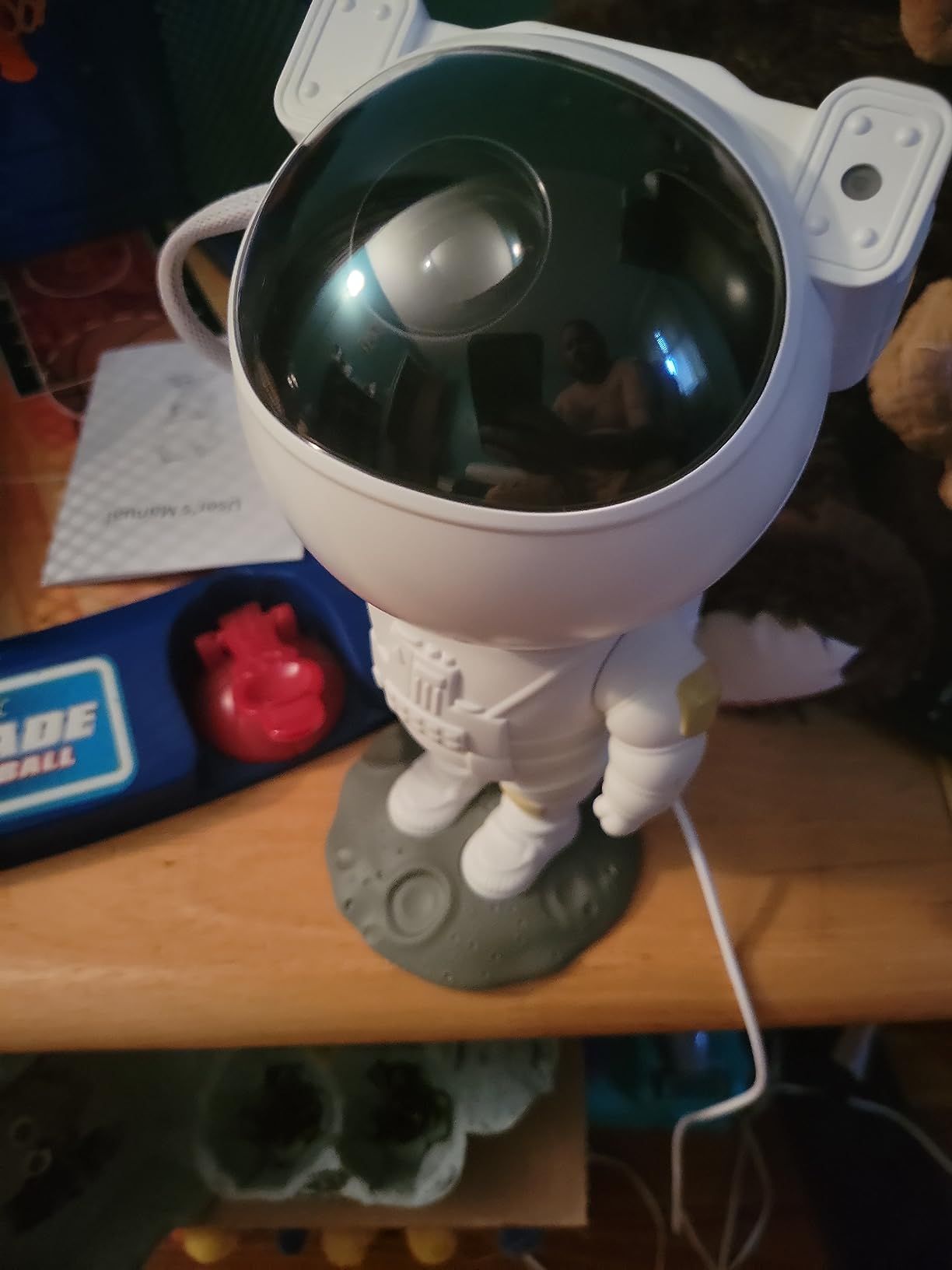 Bought for a movie night, and my 10-year-old son claimed it for his room. He loves the galaxy effect, and the astronaut design is adorable.