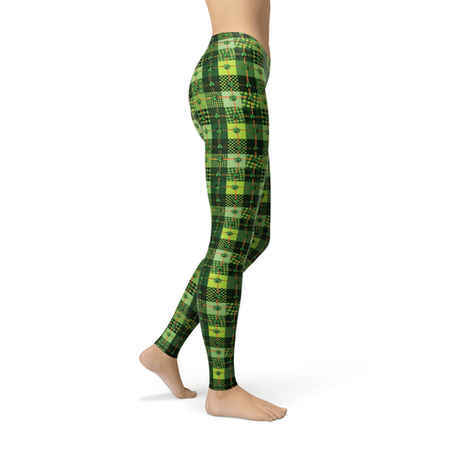 The Avery Clover Patchwork Patchwork All Over Leggings with 1.5 inch waistband offers a secure and comfortable fit on Soft Lycra fabric. Go ahead run, jump, or just relax, these leggings are perfect for any occasion.