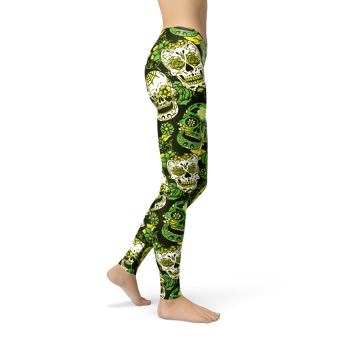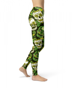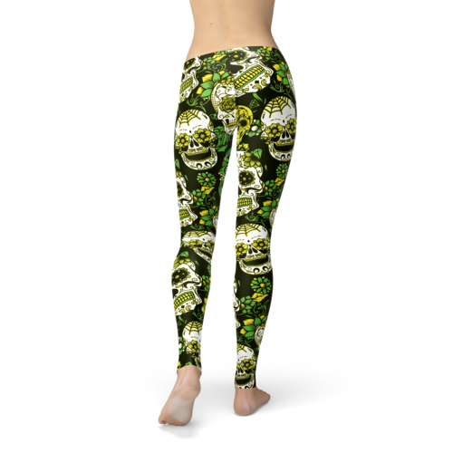 The Avery Green Sugar Skulls Leggings with 1.5 inch waistband offers a secure and comfortable fit on Soft Lycra fabric. Go ahead run, jump, or just relax, these leggings are perfect for any occasion.