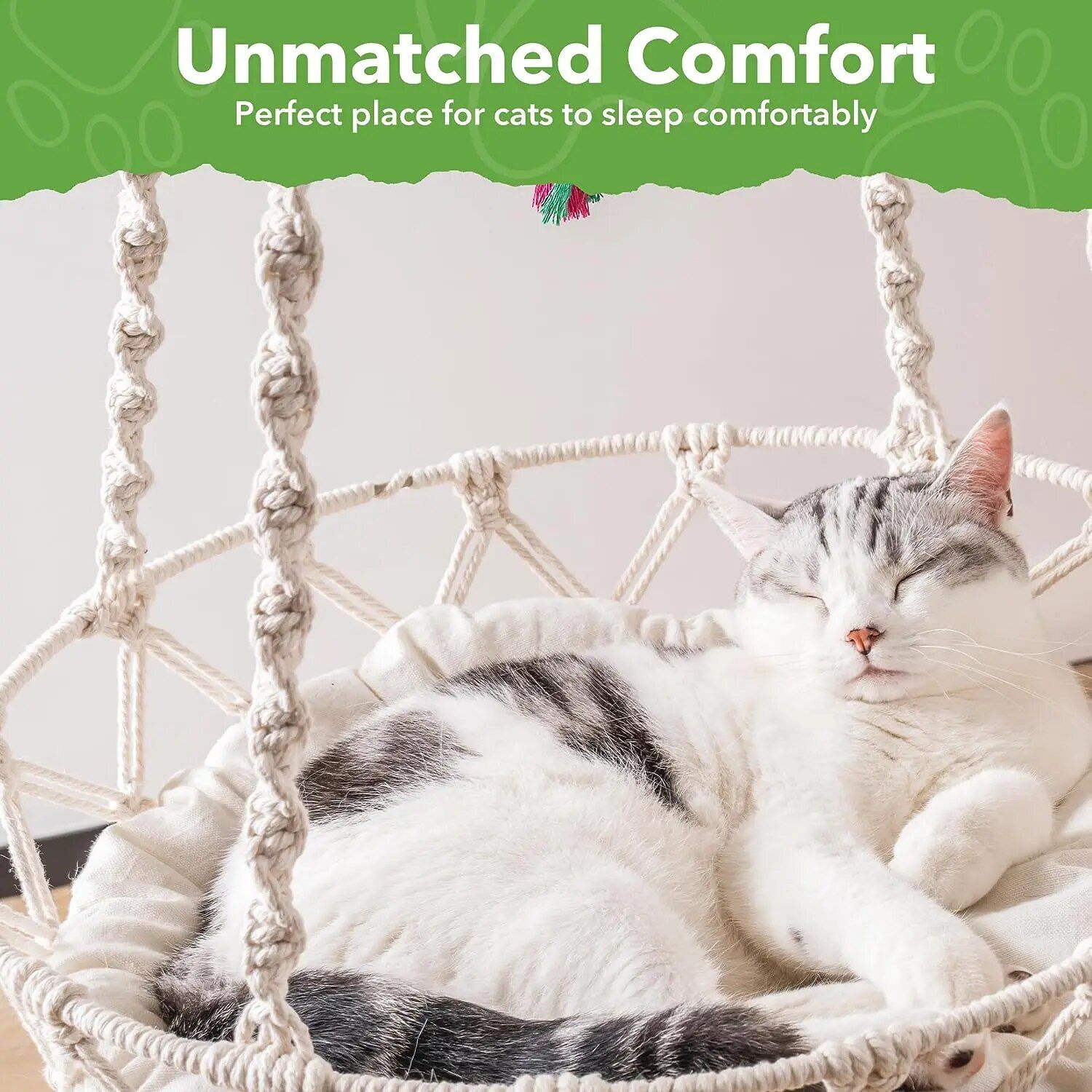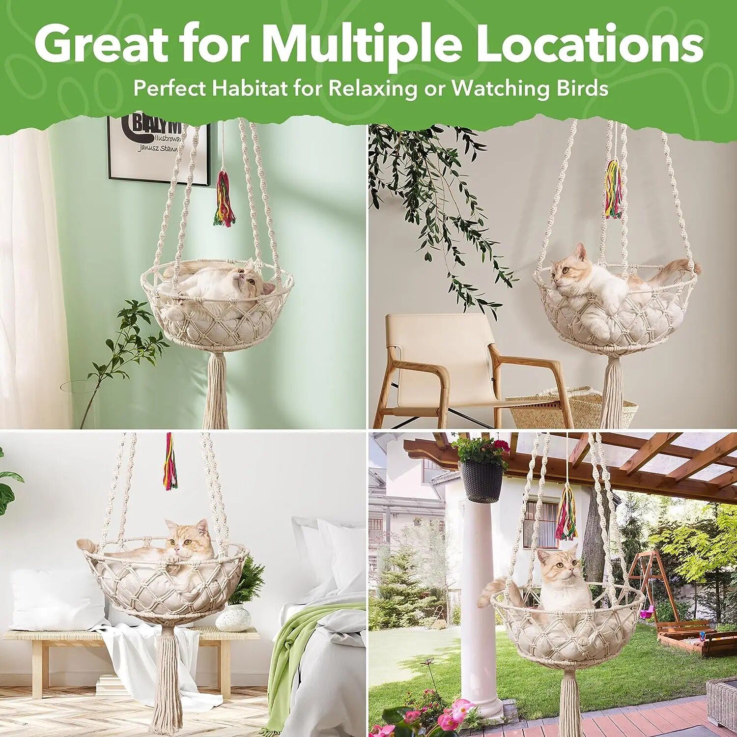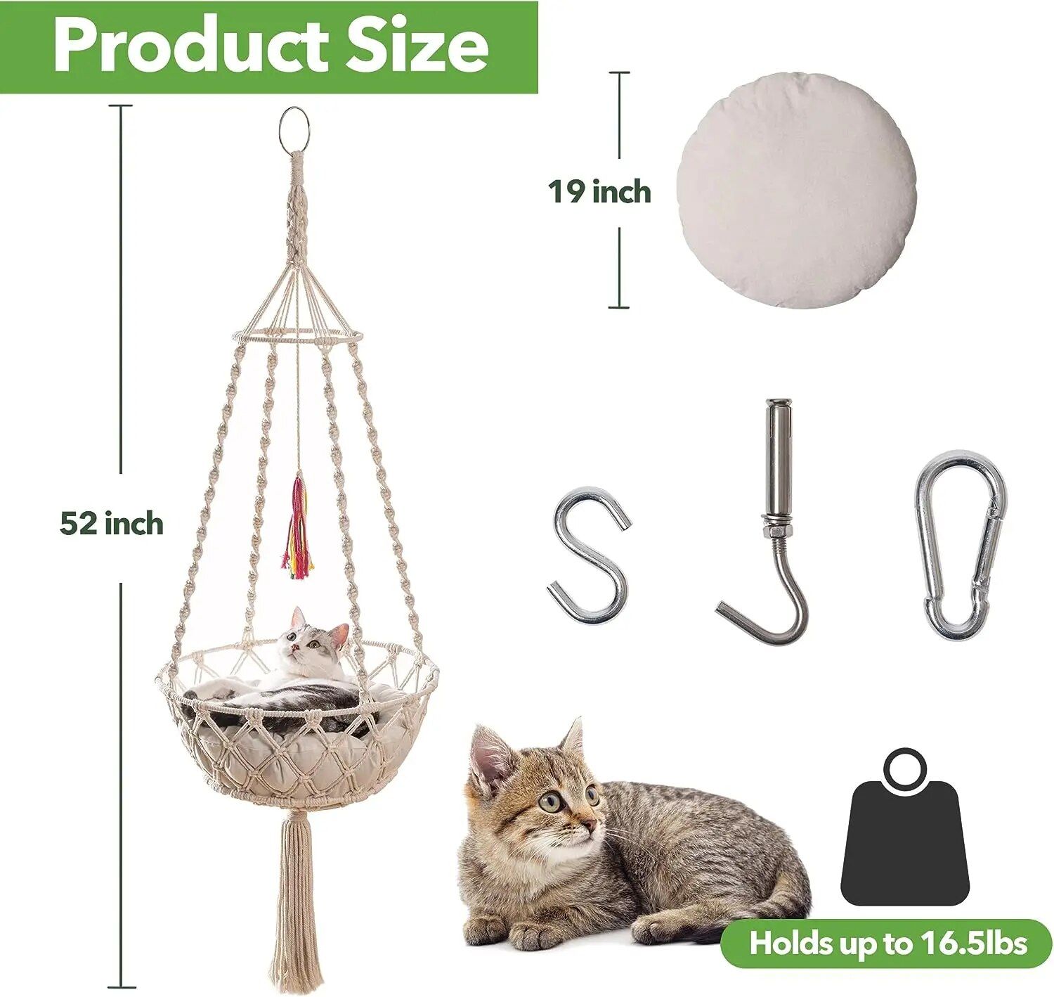 Transform your pet’s lounging experience with our Bohemian Style Cotton Rope Cat Hammock. It’s not just a cat bed; it’s a lifestyle upgrade for your feline friend. Give your cat the gift of comfort and style – add to your cart now!