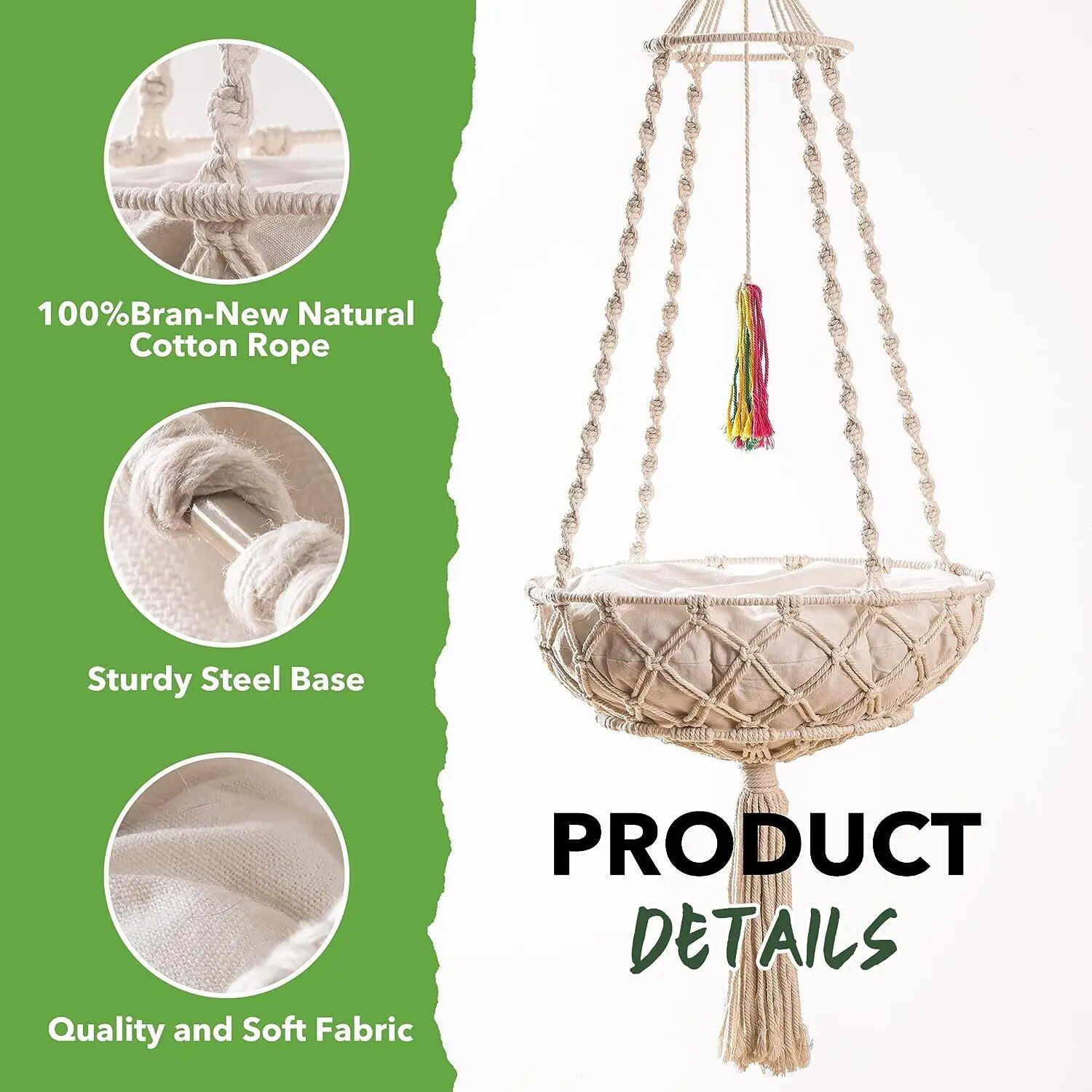 - Handwoven Design: Crafted from 100% natural cotton rope, offering breathability and sturdy support with a load capacity of up to 18lbs.