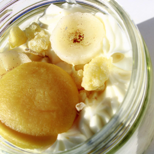That buttery sweetness of butterscotch and then you add bourbon plus the wonderful aroma of creamy banana pudding with vanilla wafers and a meringue topping with cookie crumbles.