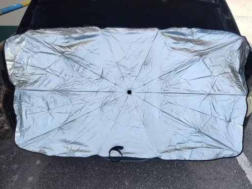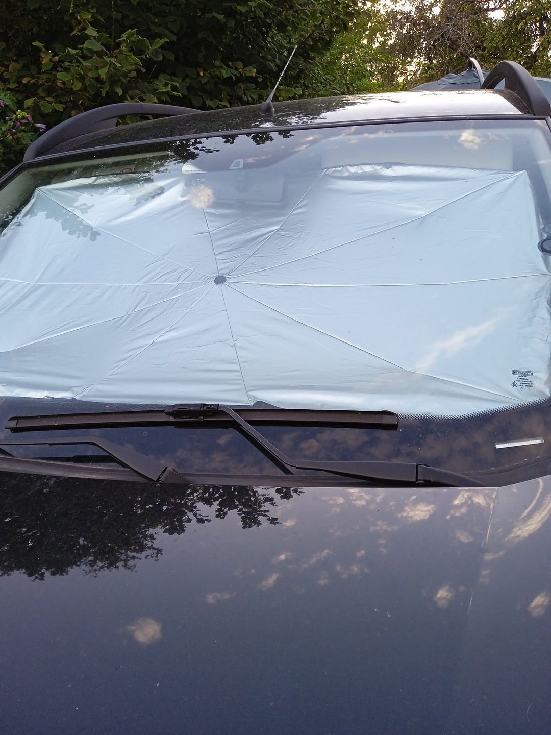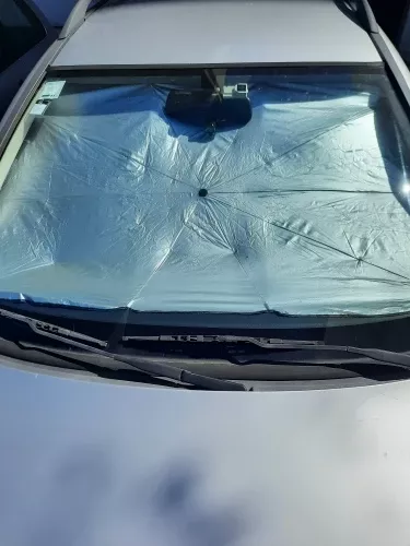 I’m so glad I got this umbrella-like sun shield. It’s much easier to use than my old accordion-style one. It makes a big difference in my car when parked in the sun, and it’s a great price.