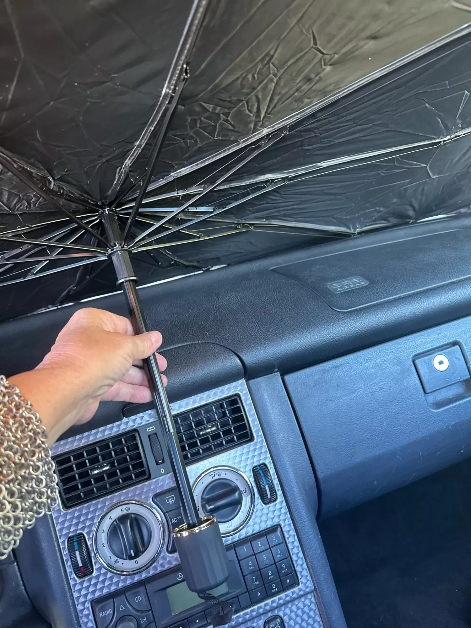 This compact, easy-to-store car umbrella is handy. It keeps my car cool enough, though I sometimes wonder if it’s as effective as other shades