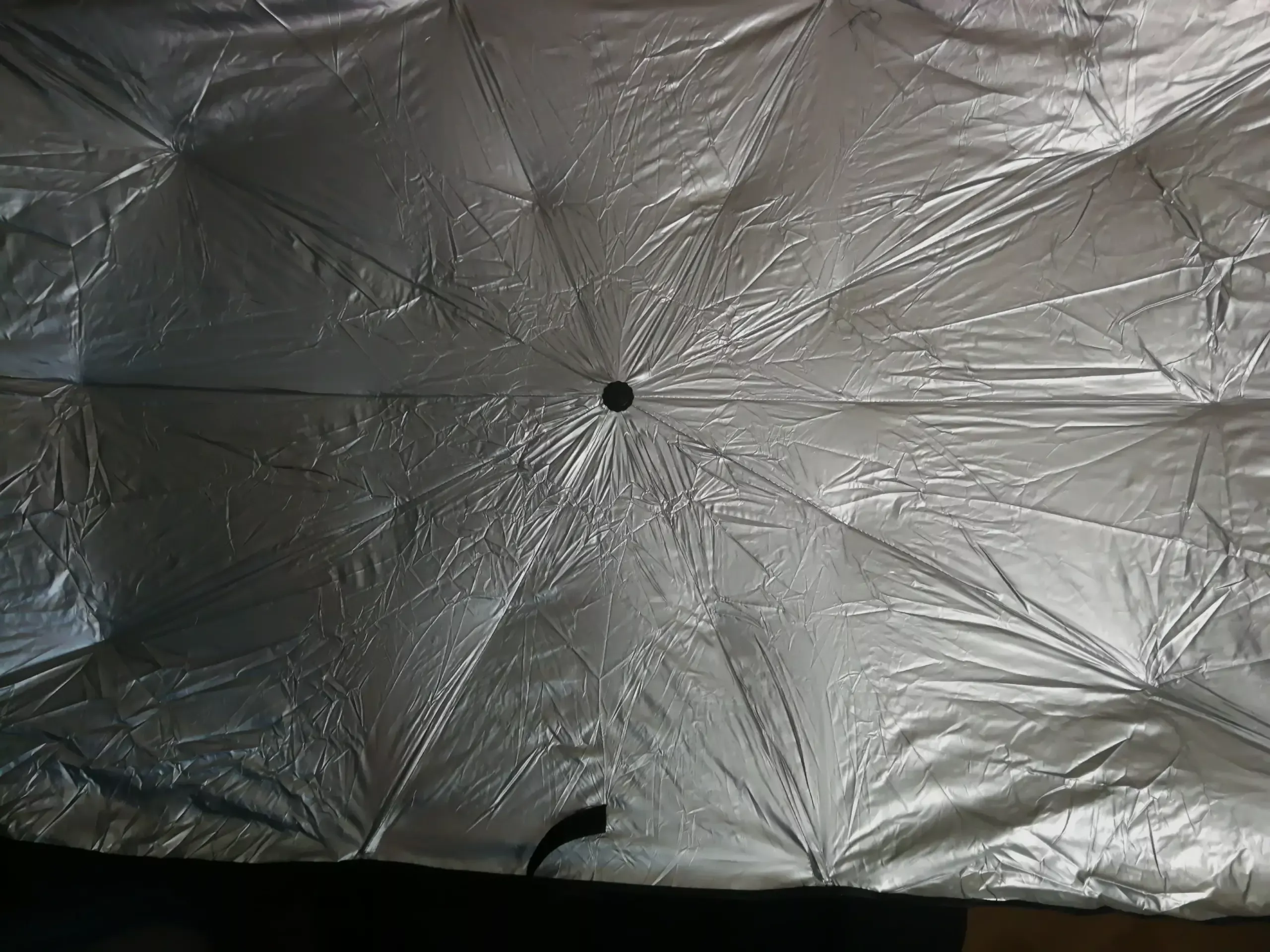 The only downside is it’s tough to fold it small enough to fit back into its bag. But it’s still easier to use than the folded mylar shades I’ve used before