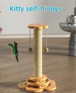 Introducing the ultimate haven for your curious cat – our Cat Scratching Tower! Meticulously crafted for the playful and adventurous spirit of your feline, this dual-tier wooden tower is more than just a scratching post; it’s a complete playground designed to satisfy your cat’s natural instincts and provide endless hours of fun.
