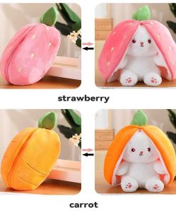 Our Strawberry Carrot Rabbit Plush Toy isn’t just any stuffed animal. Its unique ability to transform from a fruit to a bunny makes it a special treasure for children and adults alike. It’s not just a toy; it’s a companion that brings a touch of magic and joy into your life. The soft, PP cotton filling and high-quality cotton material ensure a plush, comforting experience with every cuddle.