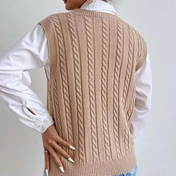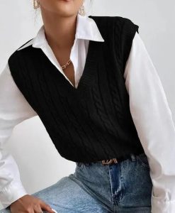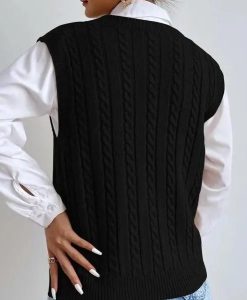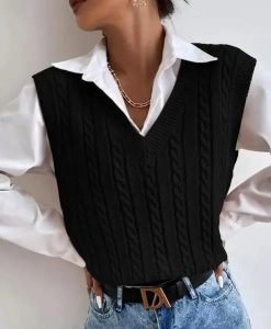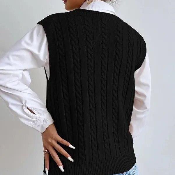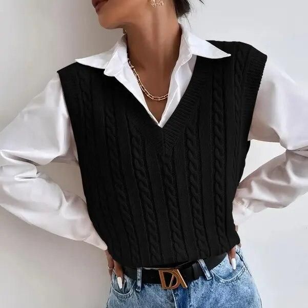 Introducing our latest addition to your autumn and winter wardrobe: the 2023 Chic Autumn & Winter Sleeveless Knit Sweater Vest for Women. This elegantly designed waistcoat combines style with comfort, perfect for those who appreciate a touch of sophistication in their casual attire. Its sleek black color and twisted pattern offer a trendy yet timeless look, making it an essential piece for any fashion-forward woman.