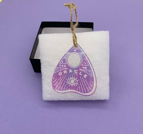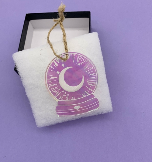 Iridescent Planchet or Crystal Ball. It will look clear until light hits it and the colors reflect off.