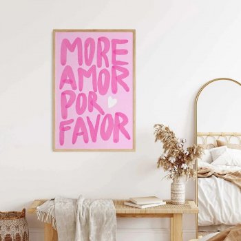 Our “More Amor Por Favor” poster is not just a piece of art; it’s a mantra for life. Designed to inspire more love and joy, it serves as a daily reminder of what truly matters. Ideal for living rooms, bedrooms, or any space that could use a splash of pink and a heartwarming message, this canvas painting is versatile. Its modern style seamlessly blends with both contemporary and eclectic decor, making it a special addition to your home.