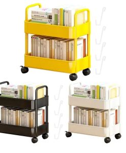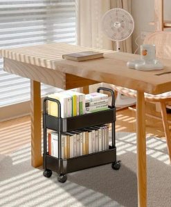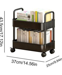 Don’t miss out on the opportunity to enhance your living or workspace with this multifunctional gem. Embrace a clutter-free environment where everything you need is always within reach. Add the Compact 2-Tier Mobile Bookshelf Cart to your cart today and start your journey towards a more organized, stylish, and efficient space!