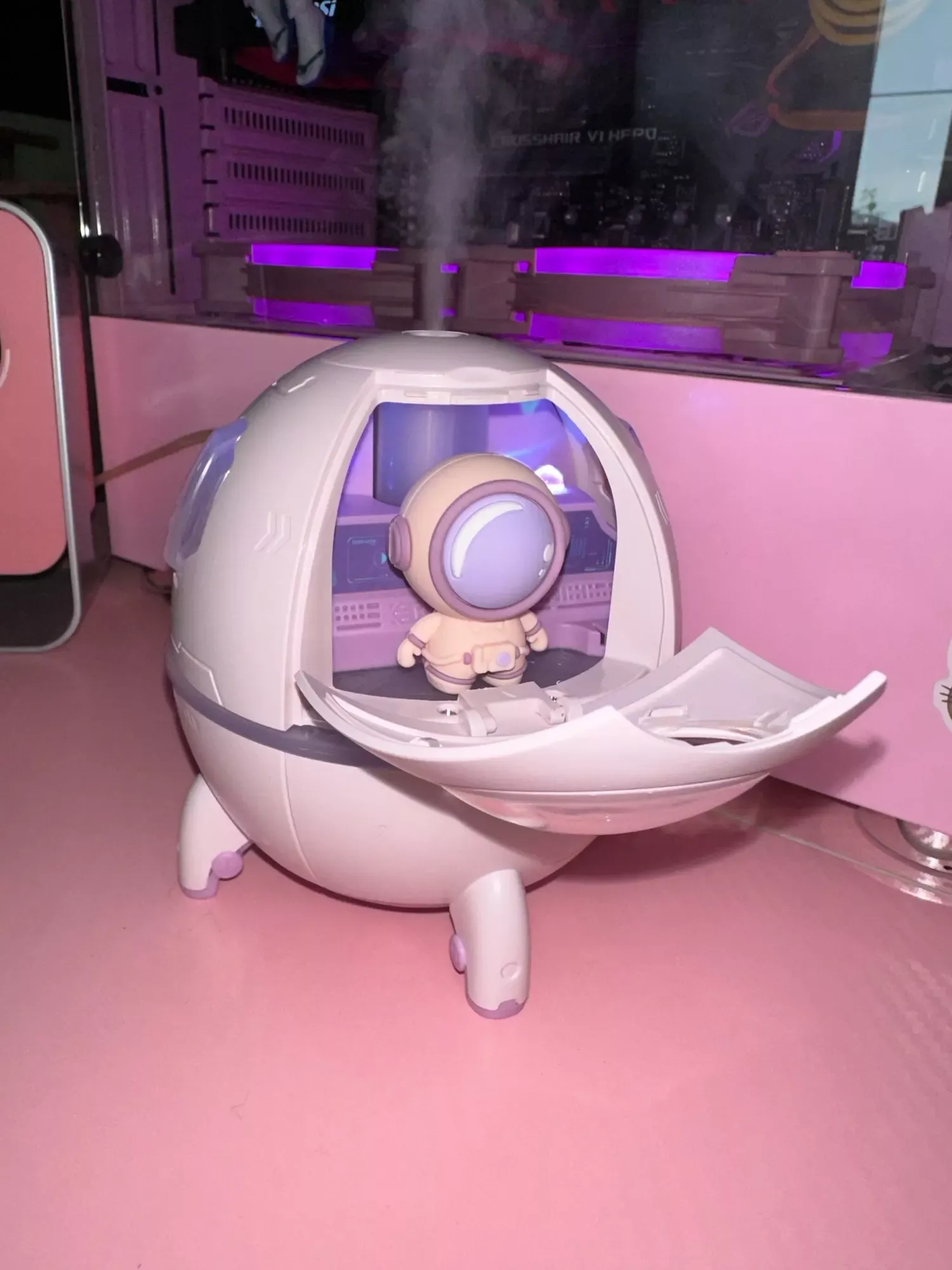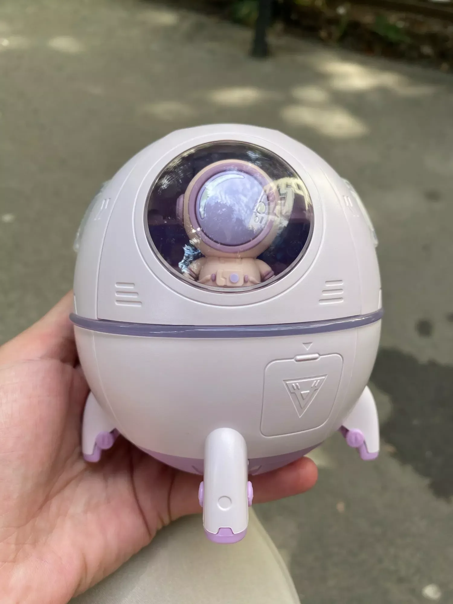 Ever since I introduced this adorable astronaut air humidifier into my bedroom, the atmosphere has transformed completely. It’s like having a little space buddy ensuring I breathe comfortably while I sleep. The device is remarkably quiet, a necessary feature for light sleepers like myself. What I love most is the water-shortage power-off protection – no worries about leaving it on. The vibrant LED light creates a soothing ambiance, perfect for relaxing evenings. It’s compact, easy to carry around, and adds a playful yet practical touch to my room. I’m genuinely impressed with the quality and functionality of this humidifier.