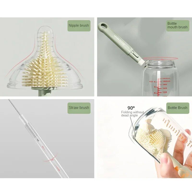 What sets our bottle brush kit apart is its unique combination of convenience, safety, and effectiveness. The extendable silicone brush reaches every nook and cranny of the bottle, ensuring a thorough clean. The soft silicone bristles are tough on milk residue and other build-ups, yet gentle enough to ensure the longevity of your baby’s bottles. Plus, its compact design makes it an indispensable item for parents on the go.
