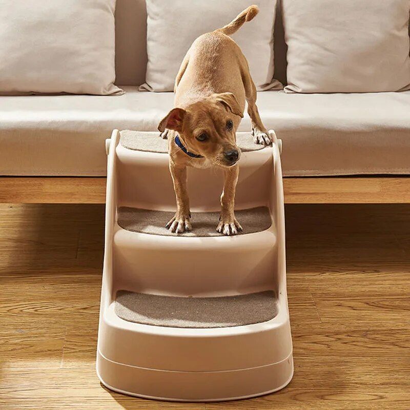 Our pet stairs stand out for their thoughtful design and practical features. They are lightweight, yet robust enough to support pets of various sizes and breeds. The non-slip surface ensures your pet’s safety, giving you peace of mind. When not in use, these stairs can be easily folded and tucked away, saving you precious space in your home. The neutral gray and beige color options blend seamlessly with your home decor, making them a stylish addition to any room.