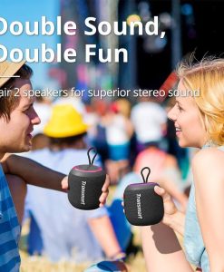 Take your music outside with confidence. Whether you’re camping, hiking, or enjoying a beach day, this speaker’s IPX7 waterproof rating and durable design mean it’s built to handle the elements. The balanced bass ensures that your music sounds great, even outdoors. And with the ability to connect up to two devices simultaneously within a 10m range, you and a friend can take turns playing DJ.