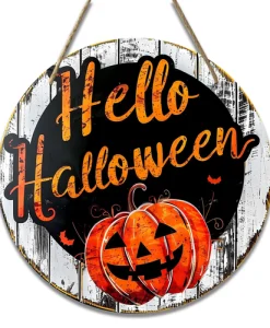 Add a touch of creativity to your Halloween decor with this Creative Circular Wooden Plaque Halloween Wreath. Choose from a variety of designs featuring iconic Halloween themes like black cats and jack-o’-lanterns to bring spooky charm to your home.