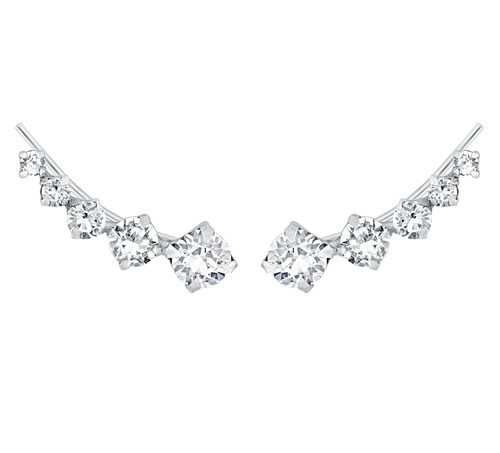 These sparkling ear climbers feature a 925 Sterling Silver setting with glittering Swarovski crystals. Attaches on the lobe with an adjustable pin.