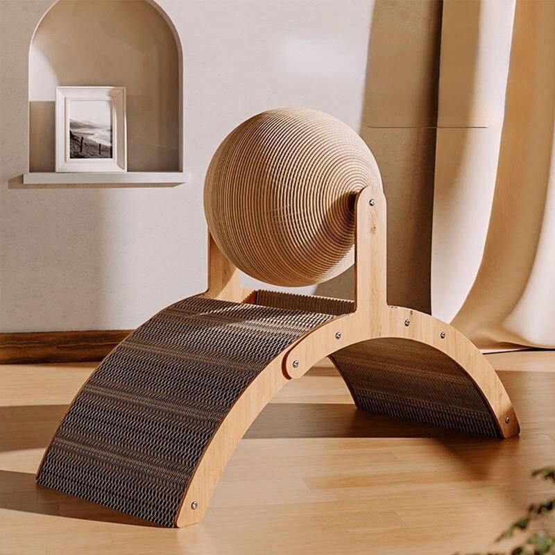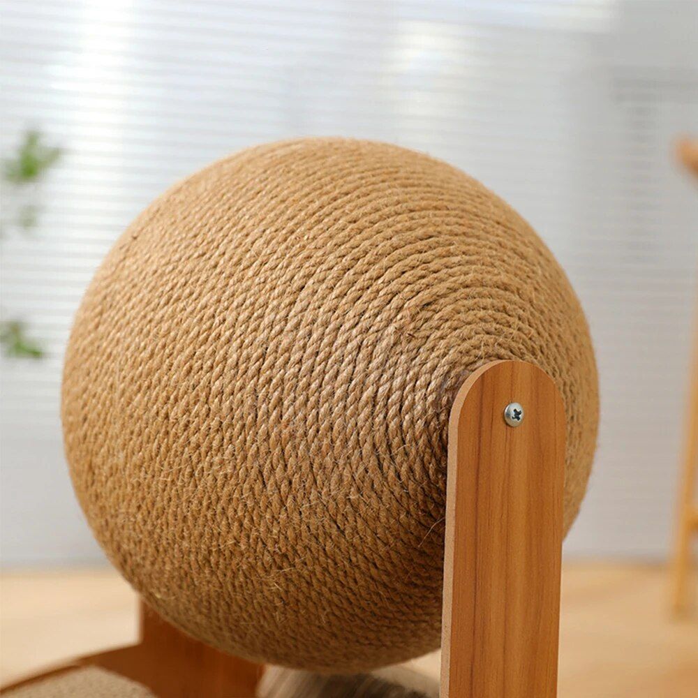 This scratcher stands out with its 2-in-1 functionality. The solid wood construction not only offers a sturdy base for scratching but also doubles as an attractive piece of pet furniture. The sisal ball adds an interactive element, keeping your cat engaged for hours. Its wear-resistant design ensures longevity, making it a cost-effective solution for your pet’s needs.