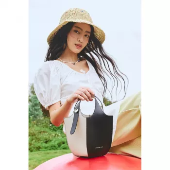The unique bucket shape not only stands out from the typical crossbody bag but also provides ample space for your daily essentials without being bulky. The combination of durable denim and luxurious synthetic leather lining adds a touch of sophistication and longevity, ensuring that the bag remains a staple in your collection for years to come.